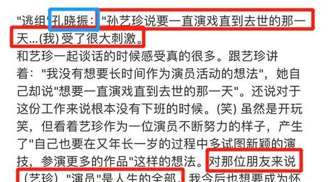 连闺蜜孔孝真都难免羡慕,说跟她在一起谈话总是感触良多,本身没有想过要长时间当演员,孙艺珍却表示要一直演戏直到去世的那一天,这种想法令自己受了很大刺激。回头再看,确是肺腑之言。